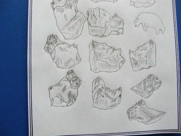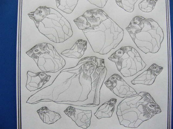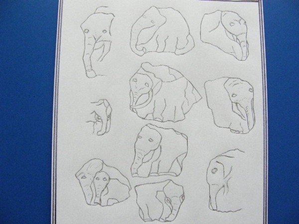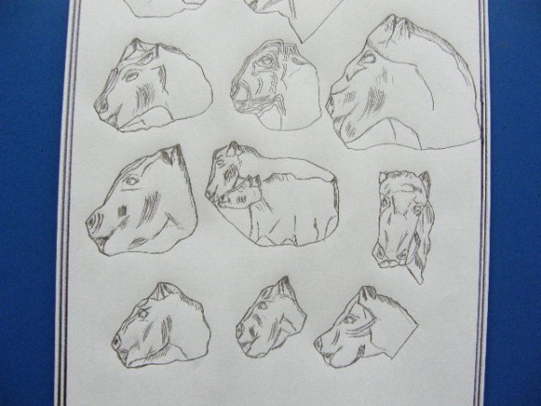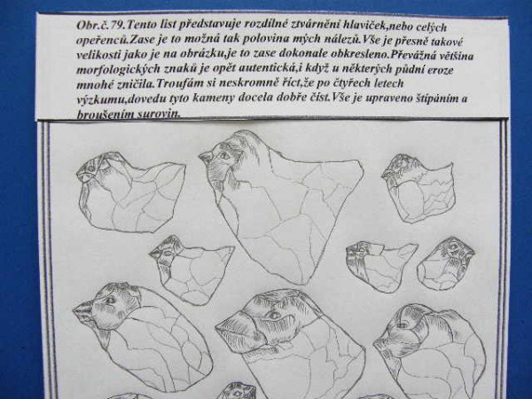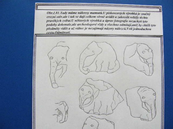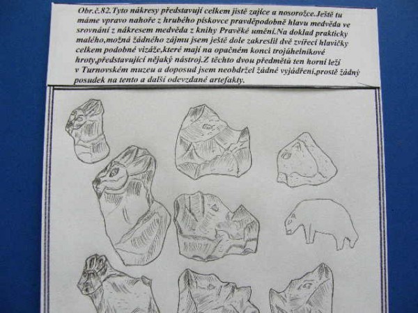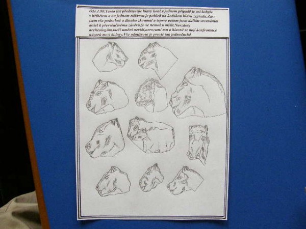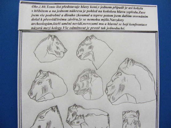 Mimo artefaktů jsou v těchto ukázkách i nákresy profilů koní,lidských hlavič